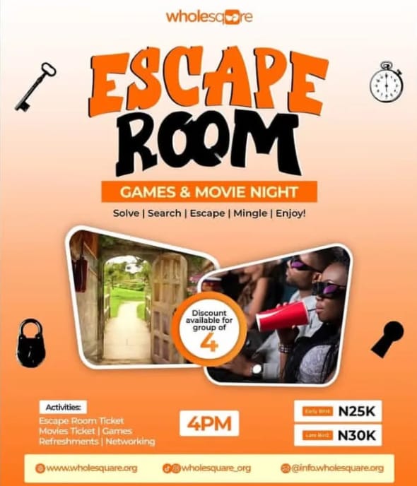 ![]() | 8. ESCAPE ROOM: GAMES & MOVIE NIGHT Victoria Island | 4:00 PM | ₦25,000 First, race against the clock to crack clues and make your great escape. Then, reward yourself with games and a movie in true weekend style. |
