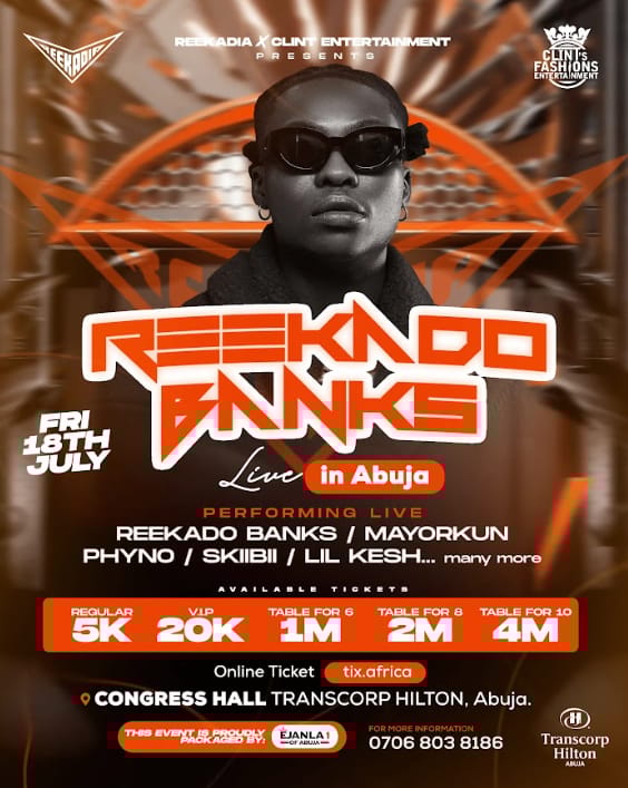 ![]() | 1. REEKADO BANKS LIVE IN ABUJA Congress Hall, Transcorp Hilton | Friday, 5:00 PM | ₦5,000 Jot that one down! Reekado Banks is bringing his smooth Afropop sound to Abuja. Pull up for the sing-alongs, hit after hit, and a memorable Friday night. |